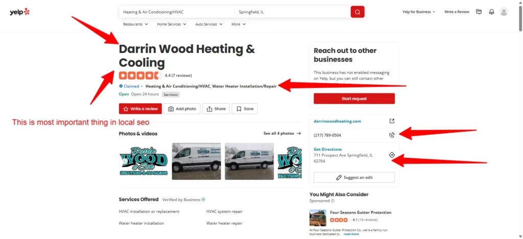 Annotated Screenshot: Key Components of an Optimized Business Listing